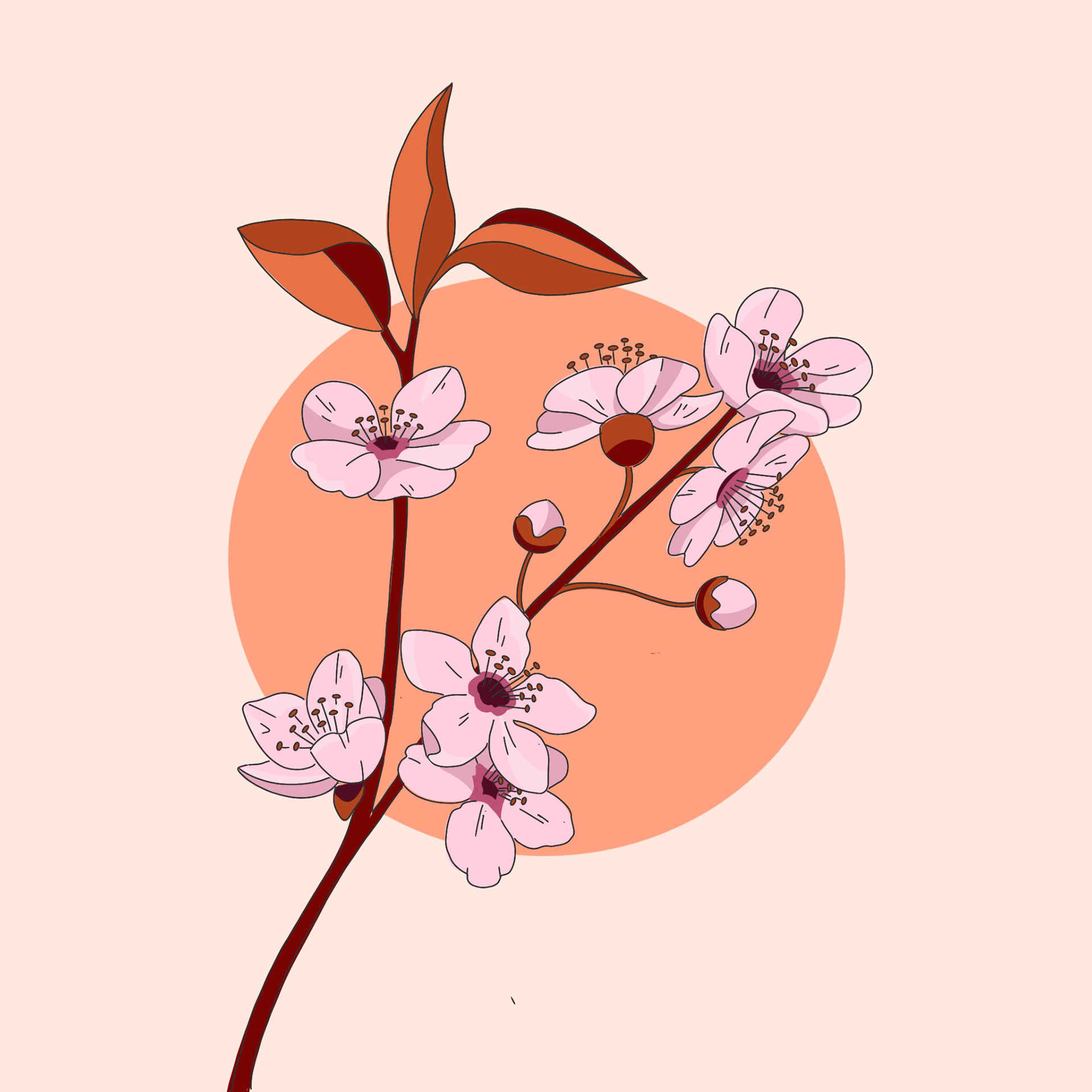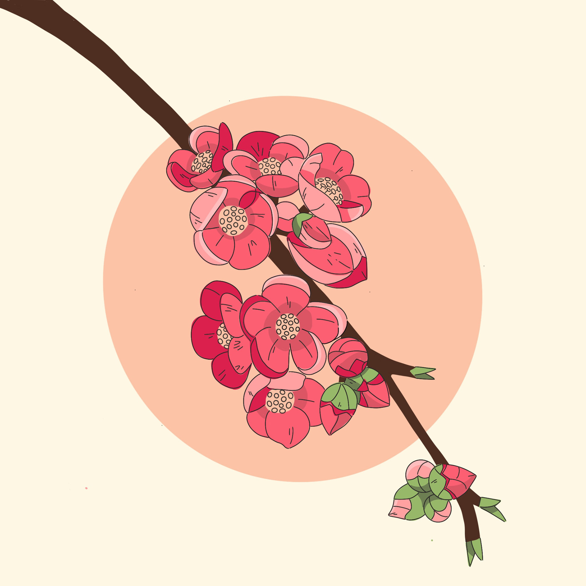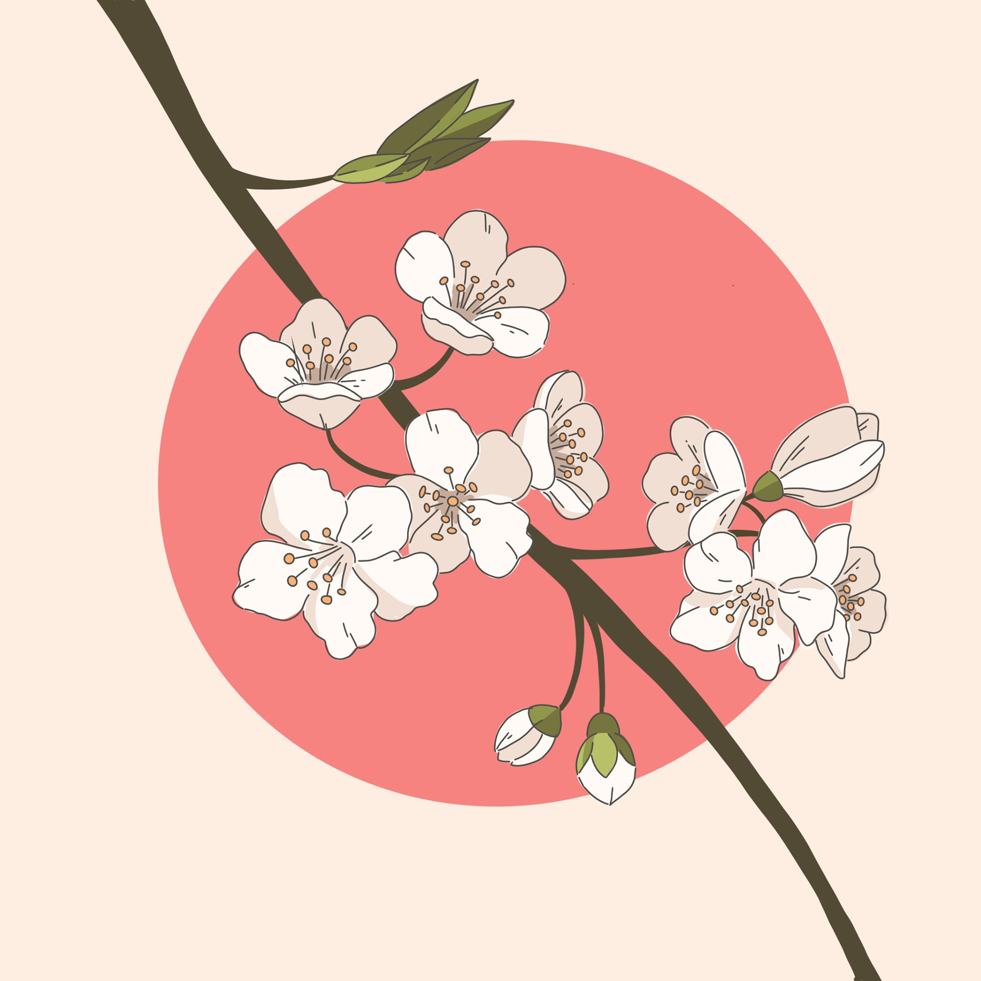 These illustrations of blossom, which formed a trio of greetings cards, drew on Japanese influences. I love the clean lines and flat shading of the Japanese woodcut style and sought to emulate it in these digital illustrations.